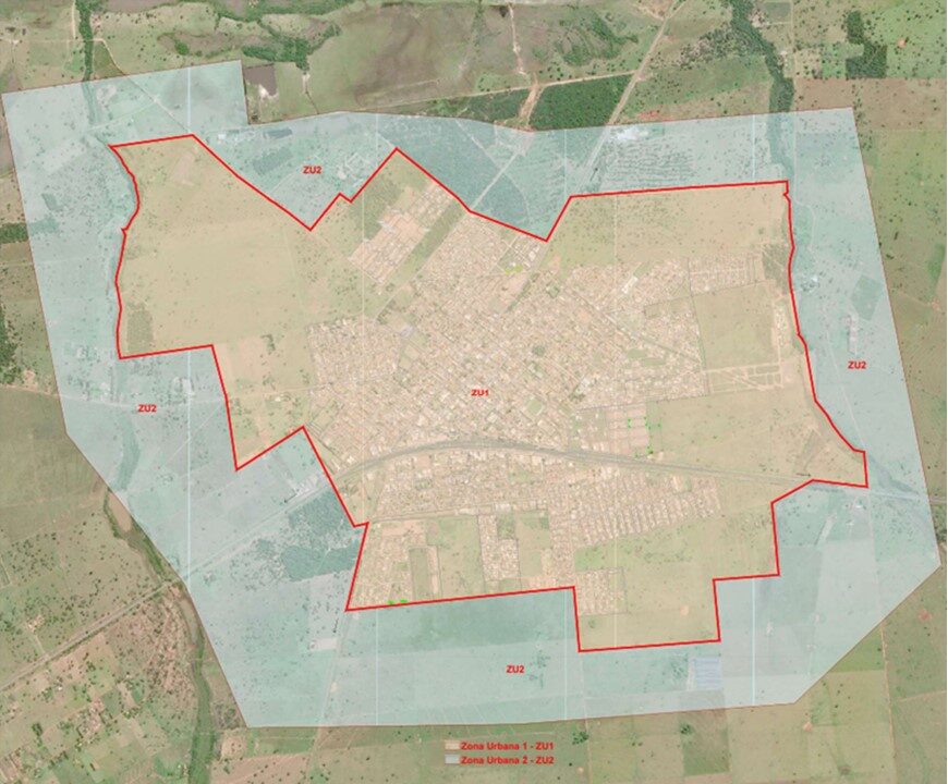 Zonas Proibidas: A implantação de alojamentos e moradias coletivas é proibida em um perímetro definido para a cidade de Bataguassu e o Distrito de Nova Porto XV (imagem abaixo). Nas demais regiões urbanas e na zona rural, a implantação é permitida, desde que respeitadas as regras da lei.