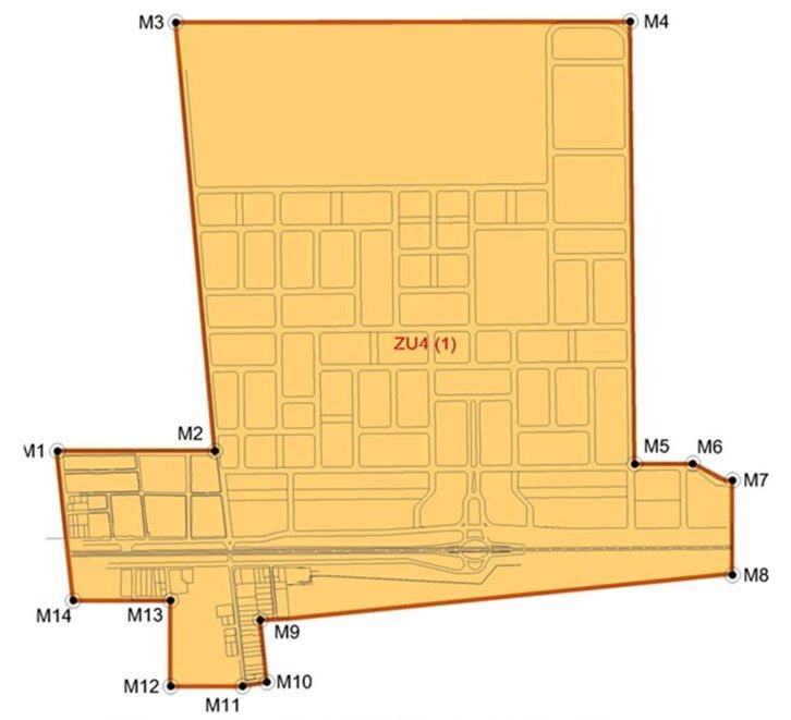 Mapa que mostra a área proibida para a implantação de alojamentos e moradias coletivas em Nova Porto XV